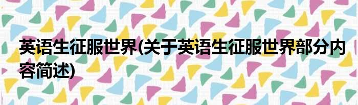 英语生征服世界(关于英语生征服世界部分内容简述)