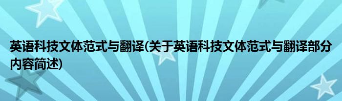 英语科技文体范式与翻译(关于英语科技文体范式与翻译部分内容简述)