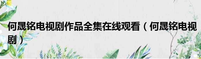 何晟铭电视剧作品全集在线观看(何晟铭电视剧)