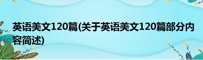 英语美文120篇(关于英语美文120篇部分内容简述)