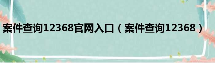 案件查询12368官网入口(案件查询12368)