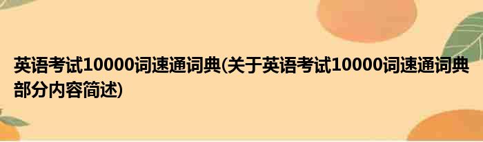 英语考试10000词速通词典(关于英语考试10000词速通词典部分内容简述)