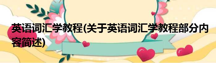 大家好,今天小方来说说一篇关于英语词汇学教程,关于英语词汇学教程部分内容简述的文章,那么现在就为大家来简单介绍下,希望对各位小伙伴们有所帮助。