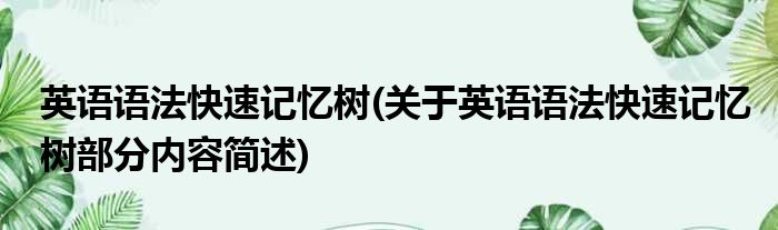 英语语法快速记忆树(关于英语语法快速记忆树部分内容简述)