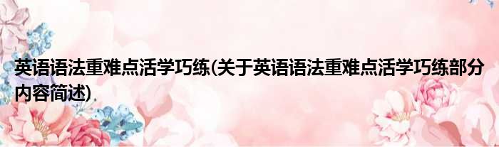 英语语法重难点活学巧练(关于英语语法重难点活学巧练部分内容简述)