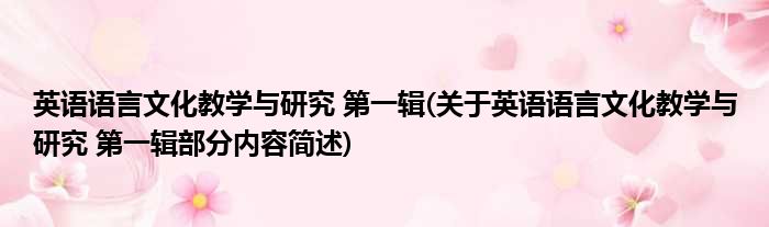 导读 大家好,今天小方来说说一篇关于英语语言文化教学与研究 第一辑,关于英语语言文化教学与研究 第一辑部分内容简述的文章,那么现在就为大