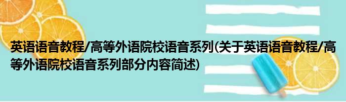 英语语音教程/高等外语院校语音系列(关于英语语音教程/高等外语院校语音系列部分内容简述)