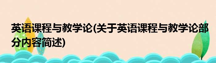 导读 大家好,今天小方来说说一篇关于英语课程与教学论,关于英语课程与教学论部分内容简述的文章,那么现在就为大家来简单介绍下,希望对各位小