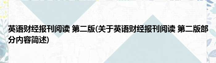 英语财经报刊阅读 第二版(关于英语财经报刊阅读 第二版部分内容简述)