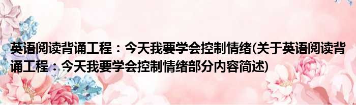 英语阅读背诵工程:今天我要学会控制情绪(关于英语阅读背诵工程:今天我要学会控制情绪部分内容简述)