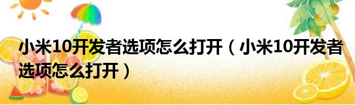 小米10开发者选项怎么打开(小米10开发者选项怎么打开)