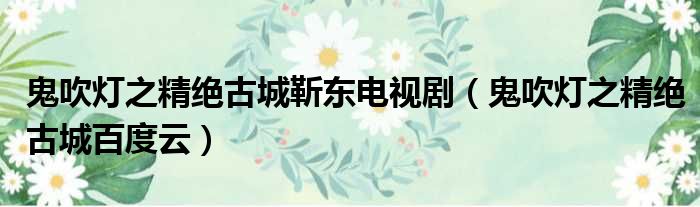 导读 大家好,小活来为大家解答以上的问题。鬼吹灯之精绝古城靳东电视剧,鬼吹灯之精绝古城百度云这个很多人还不知道,现在让我们一起来看看吧!1