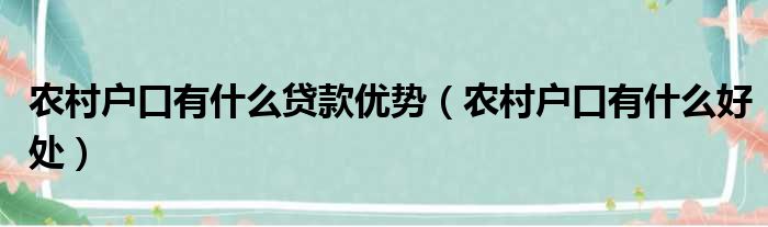 导读 大家好,小活来为大家解答以上的问题。农村户口有什么贷款优势,农村户口有什么好处这个很多人还不知道,现在让我们一起来看看吧!1、农村户