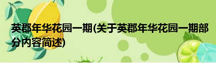 英郡年华花园一期(关于英郡年华花园一期部分内容简述)