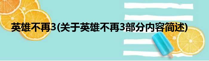 导读 大家好,今天小方来说说一篇关于英雄不再3,关于英雄不再3部分内容简述的文章,那么现在就为大家来简单介绍下,希望对各位小伙伴们有所帮助