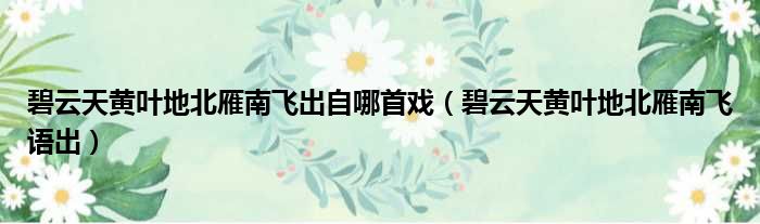 碧云天黄叶地北雁南飞出自哪首戏(碧云天黄叶地北雁南飞语出)