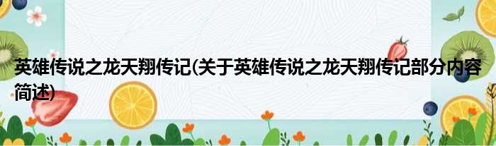 英雄传说之龙天翔传记(关于英雄传说之龙天翔传记部分内容简述)
