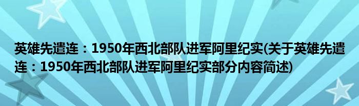 导读 大家好,今天小方来说说一篇关于英雄先遣连:1950年西北部队进军阿里纪实,关于英雄先遣连:1950年西北部队进军阿里纪实部分内容简述的文章