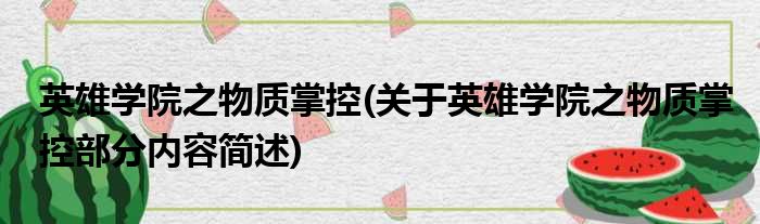 英雄学院之物质掌控(关于英雄学院之物质掌控部分内容简述)