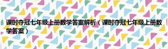 课时夺冠七年级上册数学答案解析(课时夺冠七年级上册数学答案)