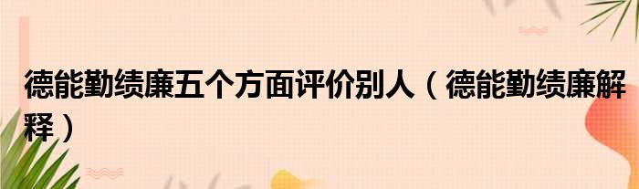 大家好,小活来为大家解答以上的问题。德能勤绩廉五个方面评价别人,德能勤绩廉解释这个很多人还不知道,现在让我们一起来看看吧!