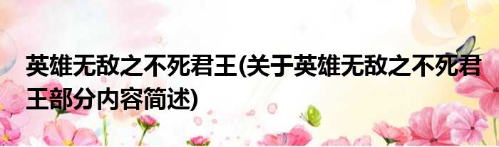 英雄无敌之不死君王(关于英雄无敌之不死君王部分内容简述)