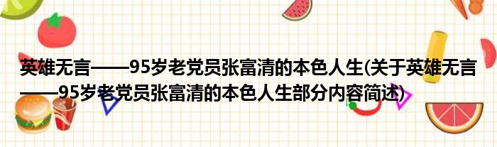 导读 大家好,今天小方来说说一篇关于英雄无言——95岁老党员张富清的本色人生,关于英雄无言——95岁老党员张富清的本色人生部分内容简述的文章