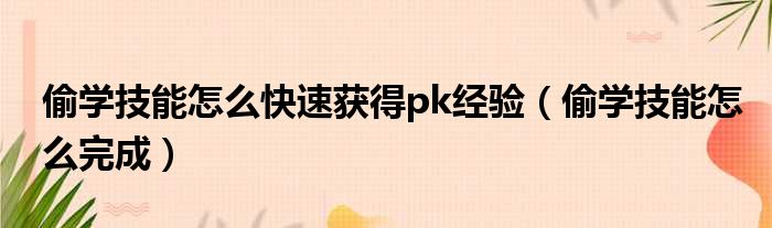 偷学技能怎么快速获得pk经验(偷学技能怎么完成)