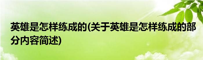 英雄是怎样练成的(关于英雄是怎样练成的部分内容简述)