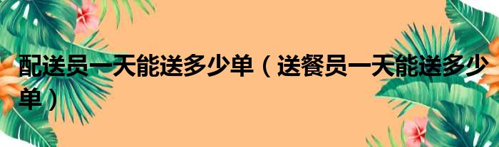 大家好,小活来为大家解答以上的问题。配送员一天能送多少单,送餐员一天能送多少单这个很多人还不知道,现在让我们一起来看看吧!