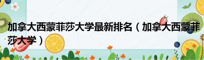 加拿大西蒙菲莎大学最新排名(加拿大西蒙菲莎大学)