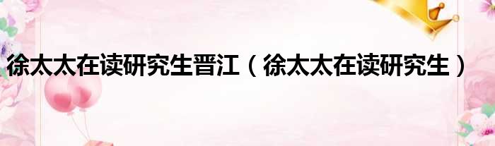 大家好,小活来为大家解答以上的问题。徐太太在读研究生晋江,徐太太在读研究生这个很多人还不知道,现在让我们一起来看看吧!