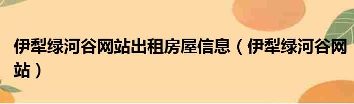 伊犁绿河谷网站出租房屋信息(伊犁绿河谷网站)