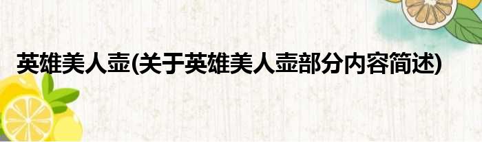 导读 大家好,今天小方来说说一篇关于英雄美人壶,关于英雄美人壶部分内容简述的文章,那么现在就为大家来简单介绍下,希望对各位小伙伴们有所帮