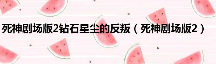大家好,小活来为大家解答以上的问题。死神剧场版2钻石星尘的反叛,死神剧场版2这个很多人还不知道,现在让我们一起来看看吧!