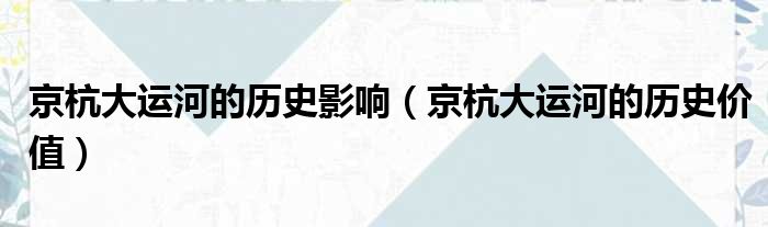 京杭大运河的历史影响(京杭大运河的历史价值)