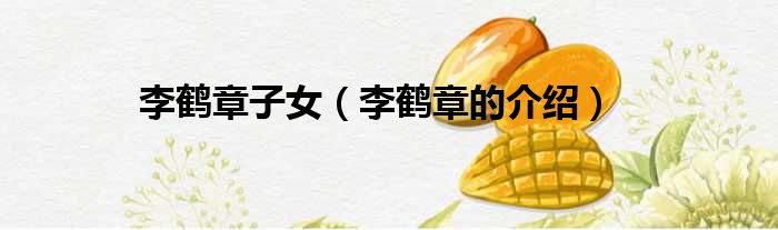 大家好,小活来为大家解答以上的问题。李鹤章子女,李鹤章的介绍这个很多人还不知道,现在让我们一起来看看吧!