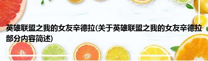 英雄联盟之我的女友辛德拉(关于英雄联盟之我的女友辛德拉部分内容简述)