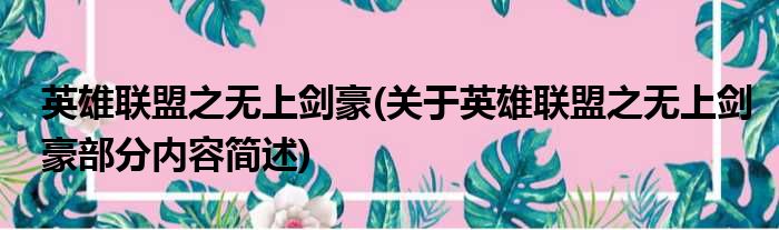 英雄联盟之无上剑豪(关于英雄联盟之无上剑豪部分内容简述)
