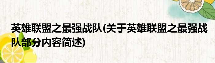英雄联盟之最强战队(关于英雄联盟之最强战队部分内容简述)