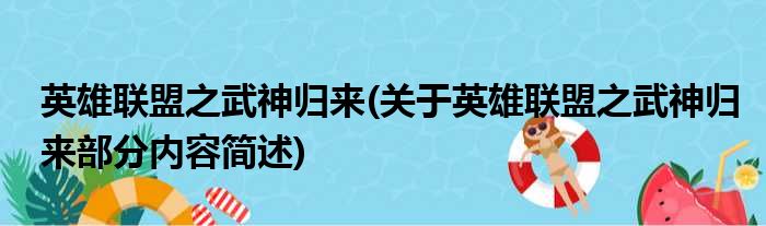 导读 大家好,今天小方来说说一篇关于英雄联盟之武神归来,关于英雄联盟之武神归来部分内容简述的文章,那么现在就为大家来简单介绍下,希望对各