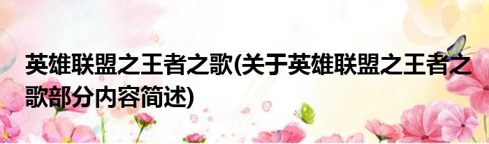英雄联盟之王者之歌(关于英雄联盟之王者之歌部分内容简述)