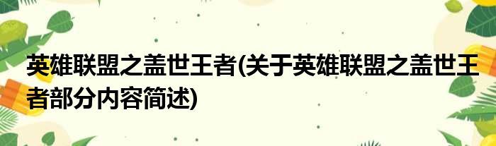 英雄联盟之盖世王者(关于英雄联盟之盖世王者部分内容简述)