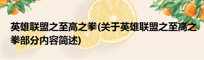 英雄联盟之至高之拳(关于英雄联盟之至高之拳部分内容简述)
