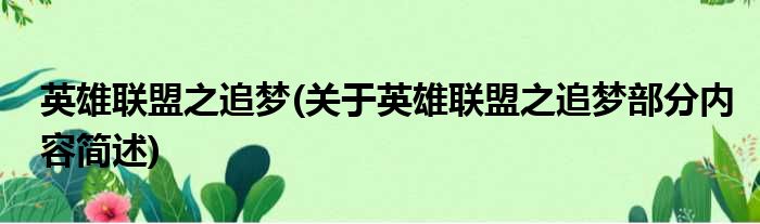 英雄联盟之追梦(关于英雄联盟之追梦部分内容简述)