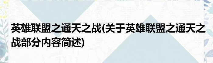 英雄联盟之通天之战(关于英雄联盟之通天之战部分内容简述)