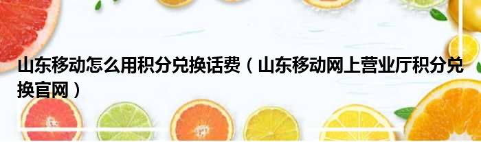 导读 大家好,小活来为大家解答以上的问题。山东移动怎么用积分兑换话费,山东移动网上营业厅积分兑换官网这个很多人还不知道,现在让我们一起来看