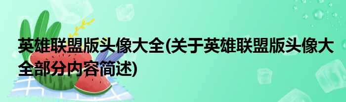 英雄联盟版头像大全(关于英雄联盟版头像大全部分内容简述)