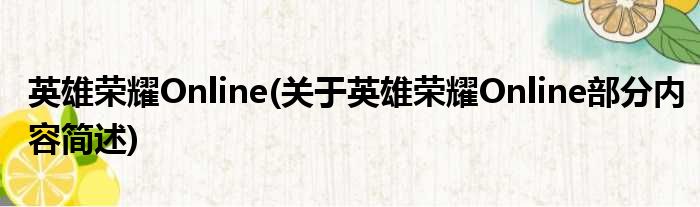 英雄荣耀Online(关于英雄荣耀Online部分内容简述)