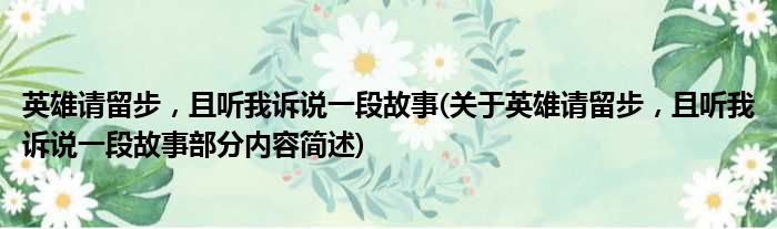 大家好,今天小方来说说一篇关于英雄请留步,且听我诉说一段故事,关于英雄请留步,且听我诉说一段故事部分内容简述的文章,那么现在就为大家来简单介绍下,希望对各位小伙伴们有所帮助。